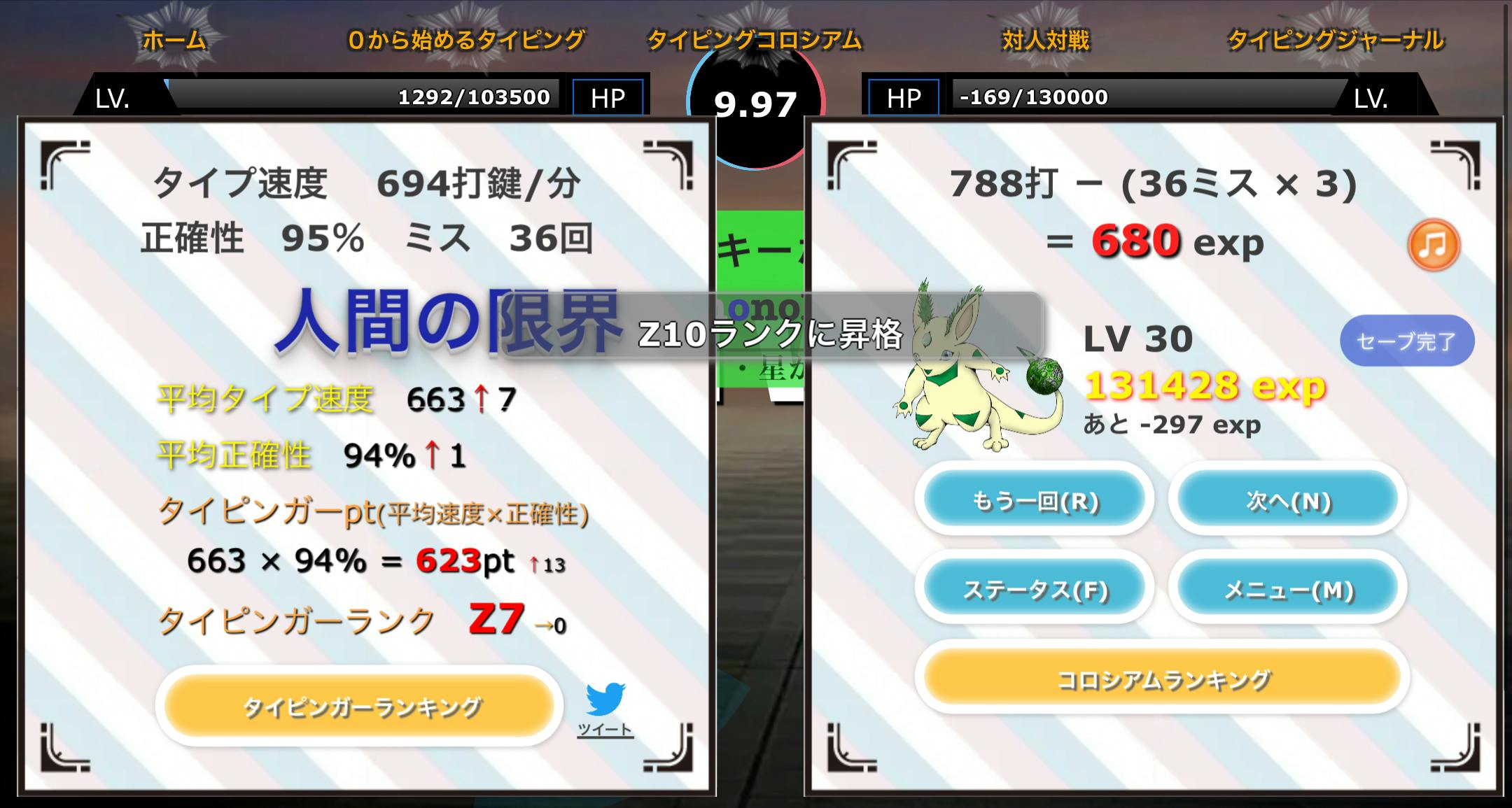 Score 数値 称号 コメント Score 4000~ 神 1000万人に1人の逸材 全国優勝狙えるレベル Score 3500~ チーター チーターか疑いたくなるレベル 県内でトップレベル鴨 Score 3000~ TOP(?) 上を見ればまだまだいるよ ほら Score 2500~ えぐい 稀にみるタイパー ようこそ Score 2000~ とても速い クラスや社内に1人いるレベル すごい Score 1500~ 速い 一般的に速いといわれるレベル Score 1000~ 普通 不自由なくタイピングができる Score 500~ 頑張れ まだまだ伸ばせる 伸びしろ有 Score 0~ まだまだ 最下層 伸びしろ有 e38186e3819de381a4e3818de381afe381b0e381a3e3819be38289e3828ce3828be381b2e381a4e38288e38186e3818ce38182e3828ae381bee381993f3f3f0d0a