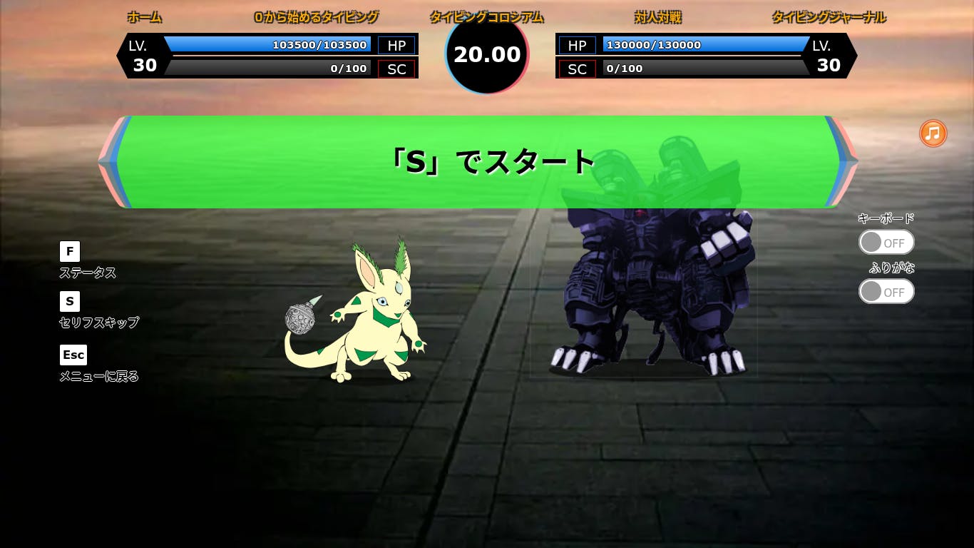 0:22〜1:17までタイピング!曲を流してやってみてね