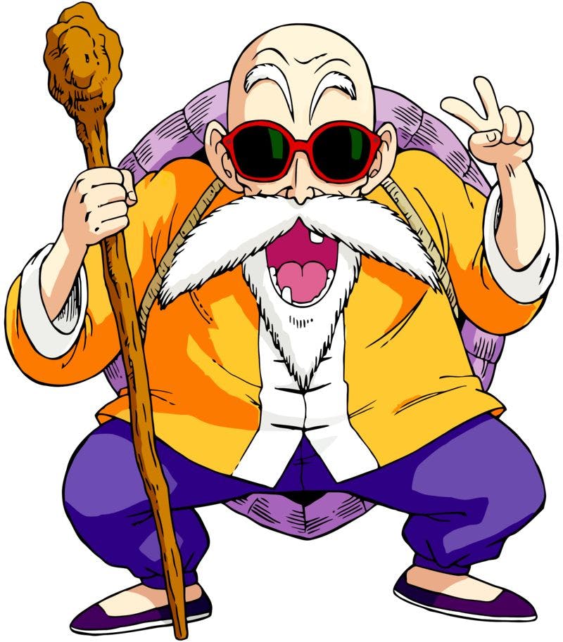 亀仙流という独自の流派を開き、武術の神として世界中で知られています。「仙人」の名とは裏腹に、外見は南国風の小洒落た出で立ちで、性格はスケベで俗っぽく、しかしその実力は本物で一般人ならものの数秒で倒し、天下一武道会でも好成績を収めています。弟子には悟空を初め名のある武道家達を排出している。