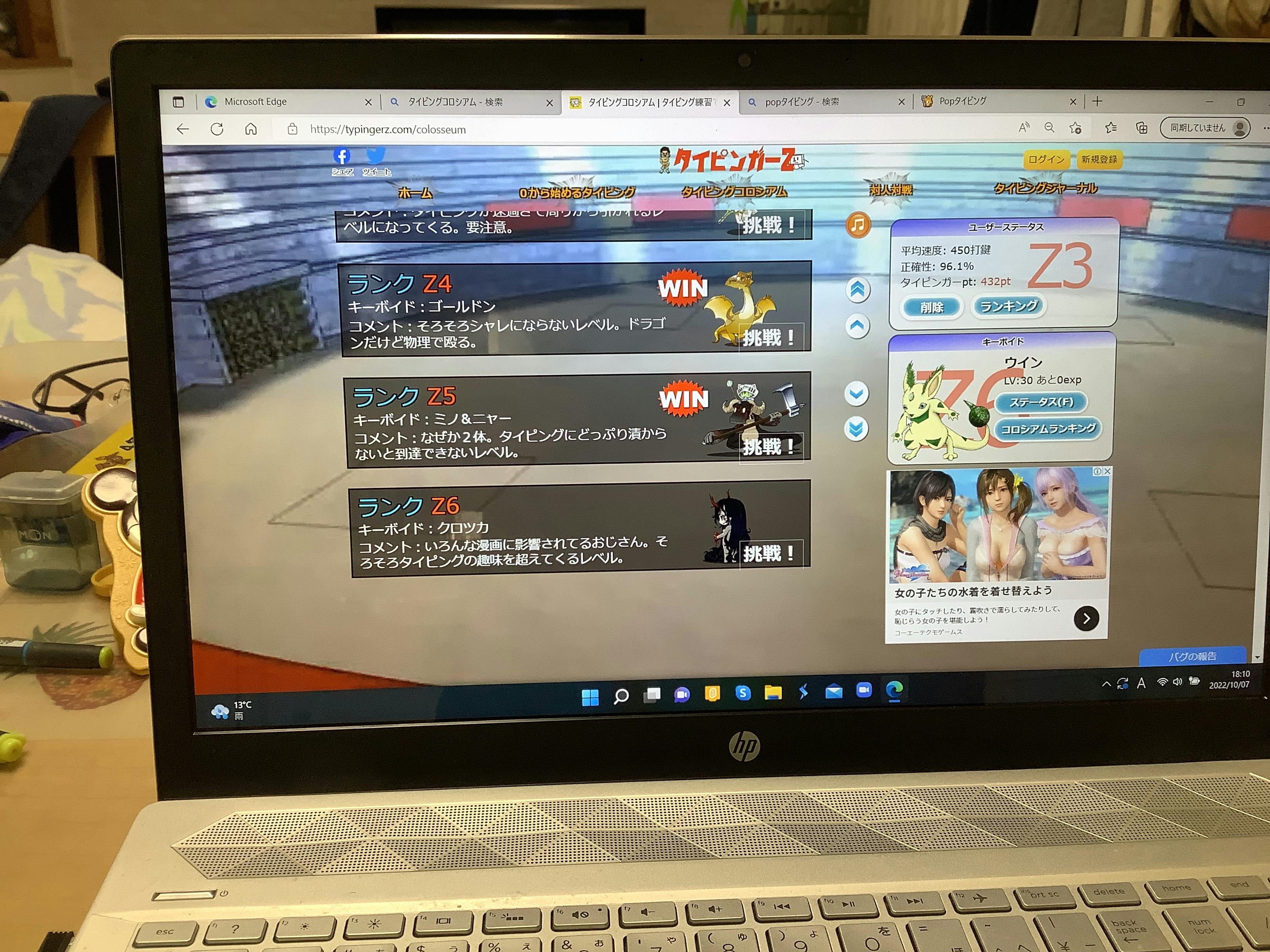 タイピングのランキング