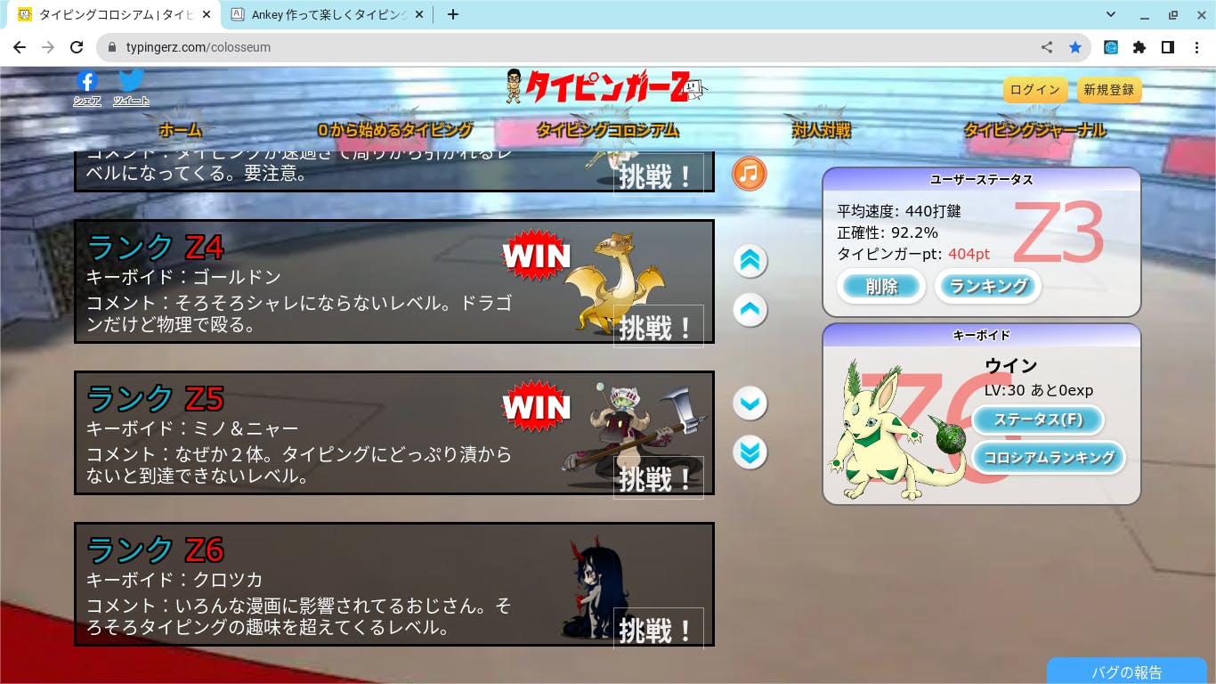 タイピングのランキング