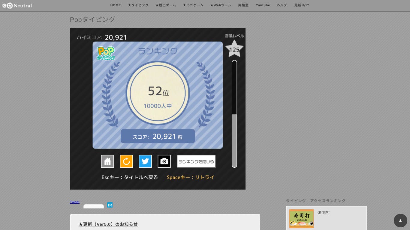 タイピングのランキング