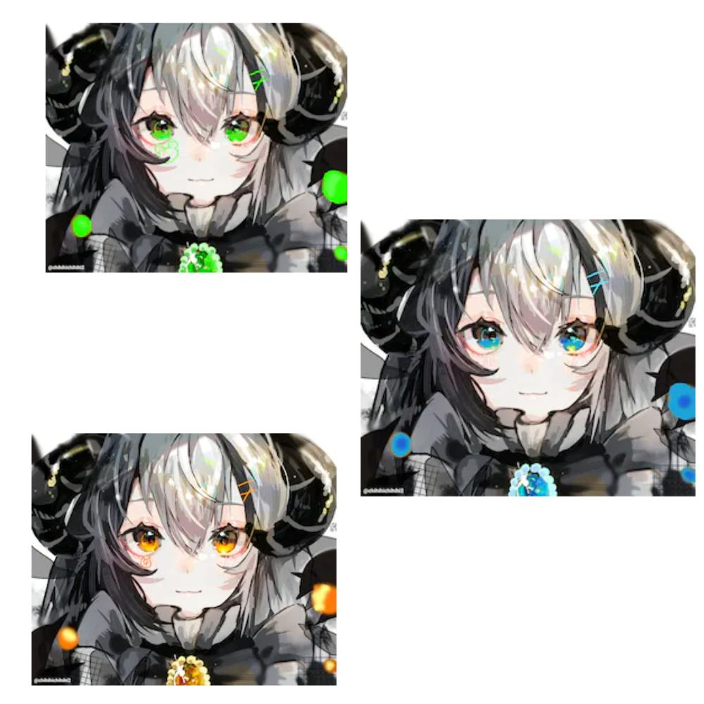 2人バージョン みーまちゃ(みーちゃん・いろちゃん) ここ丸(ここちゃん・メロ丸ちゃん) りりみつ(りーちゃん・Hachimitsu) どうかな? 3人バージョン はみちゃ(Hachimitsu・みーちゃん・いろちゃん) りこ丸(りーちゃん・ここちゃん・メロ丸ちゃん) どーでしょー