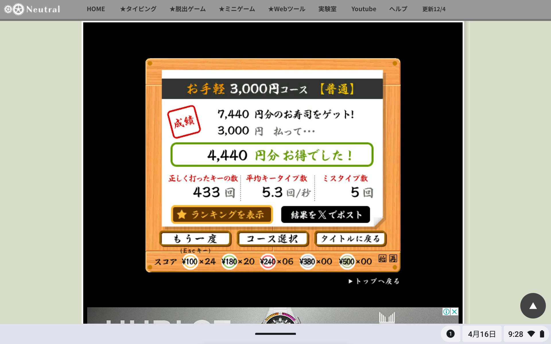 タイピングのランキング