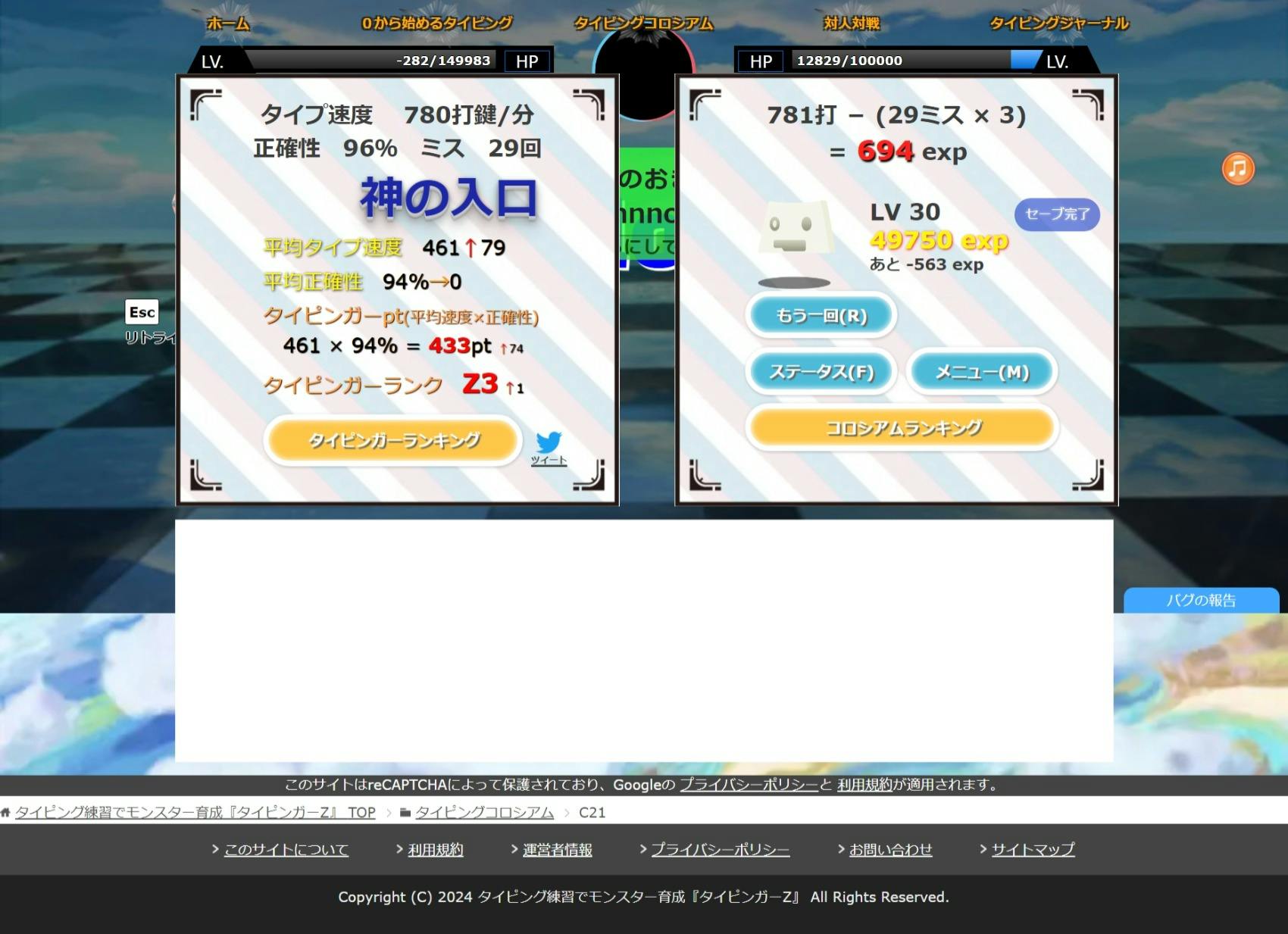 1000回プレイありがとぉぉぉぉお!!!!! 300以上 初級 500以上中級 700以上上級 1000以上超上級 1500以上初段 2000以上マスター 3000以上人間の限界 4000以上 仙 5000以上 神 10000以上 無