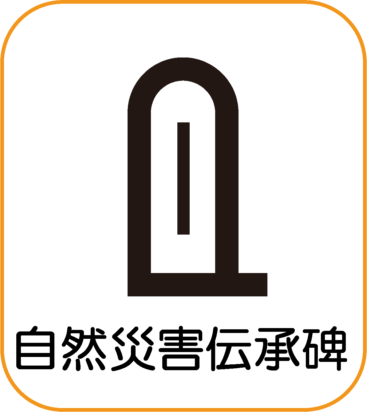 過去に起きた自然災害の情報を伝える石碑やモニュメントを表示している。 記念碑の記号に碑文を表す縦線を加えた形となっている。 従来の記念碑記号より若干大きいサイズ(縦・横・線幅→約1.5倍)としている。