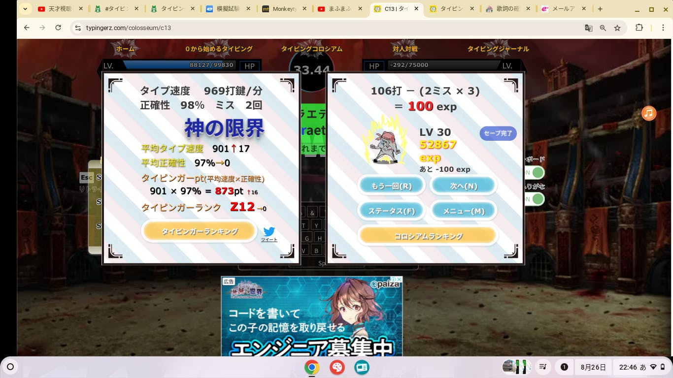タイピングのランキング