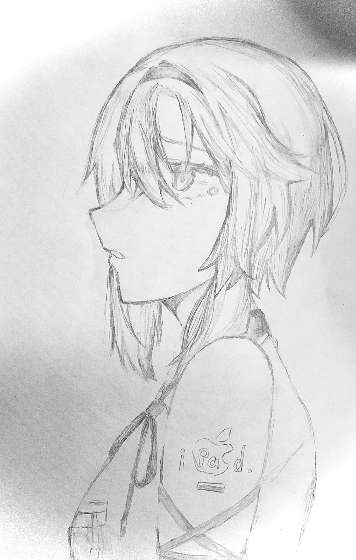 アナログイラスト描きました。 目を最後に書いたら、変な感じになっちゃいましたが、イメージは「iPad」です。 iPadの要素を入れて書いてみました。 カチューシャとかもポイントです。