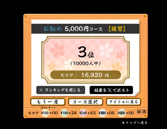 最近は5000円コースで一位とっちゃったりしました!!