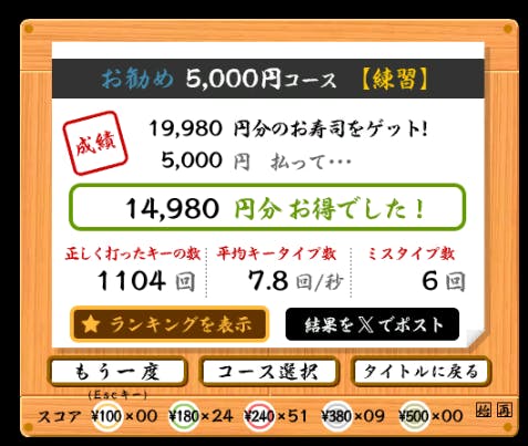 タイピングのランキング