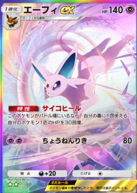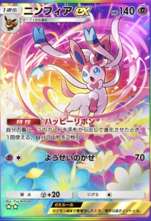 イーブイガーデンで初登場したカード。このexじゃ塵と同前ぐらい弱いけど、特性が強い。実質種イーブイを4枚入れてるようなもんだし、ニンフィア&エーフィだったりとか色々開拓されて強い。他のイーブイファミリーが強かったおかげでこっちも強くなった。