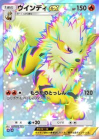 イーブイガーデンで初登場したカード。リリース後初期はヒカリと合わせて強くなるんじゃないかと個人的に予測してたけど実際そうでもなかった。炎で他にあわせて強いものもなく、技は強いけどHPが少ないおかげで特性使って倒される。Cランクくらい?