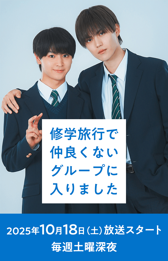 萩原利久、八木勇征(FANTASTICS) 2021年11月19日0:59〜放送スタート。2023年2月8日0:59〜放送スタート。毎日放送「ドラマ特区」枠。2023年4月7日全国放映。 ☆