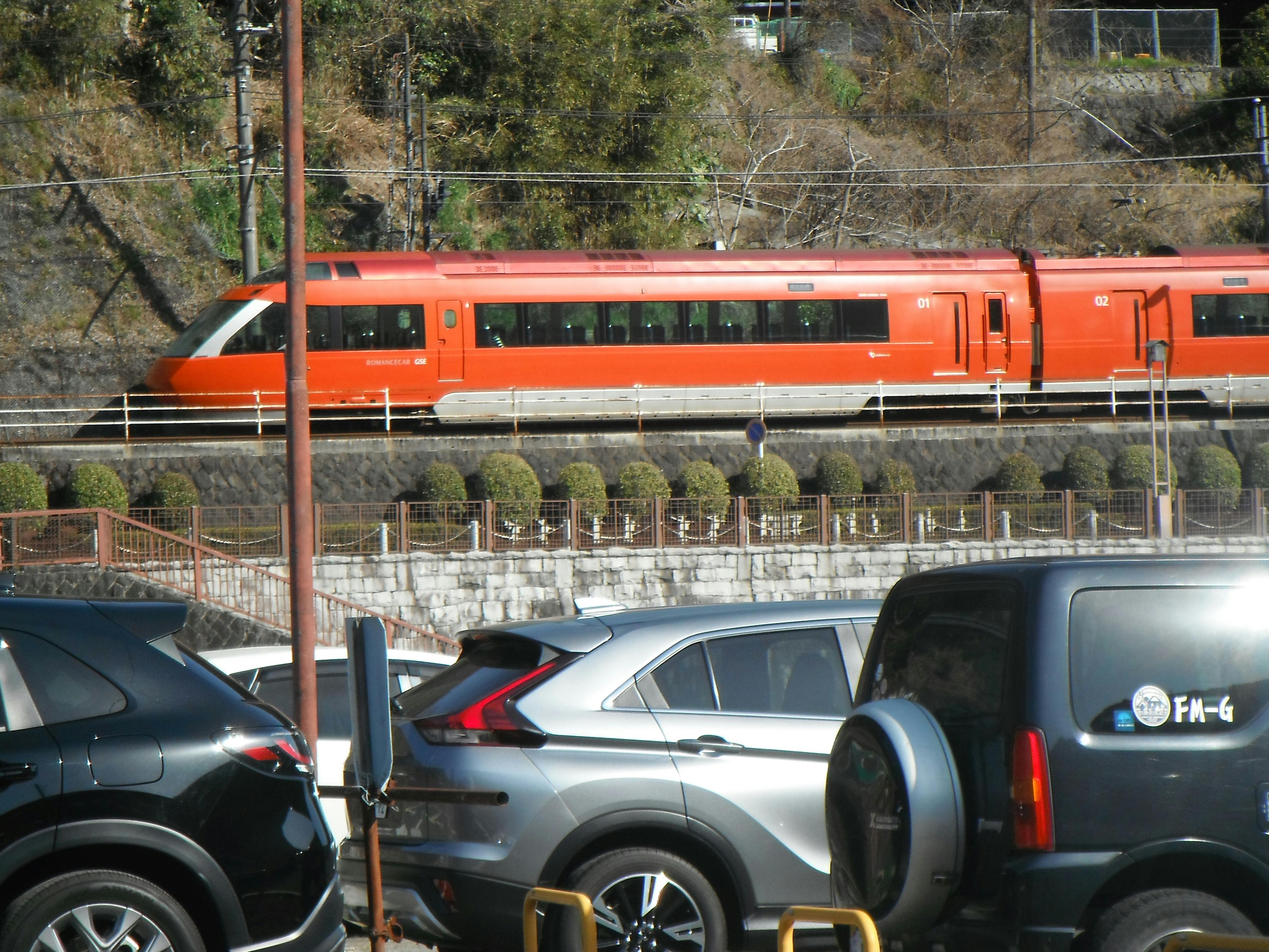 ロマンスカーGSE(70000形)は、2018年にデビューした小田急電鉄のフラッグシップ特急です。「Graceful Super Express(優雅な超特急)」の略で、情熱的なバラ色(ローズバーミリオン)の車体と、前面の大型1枚ガラスによる展望席、高さ1mの連続窓が特徴です。